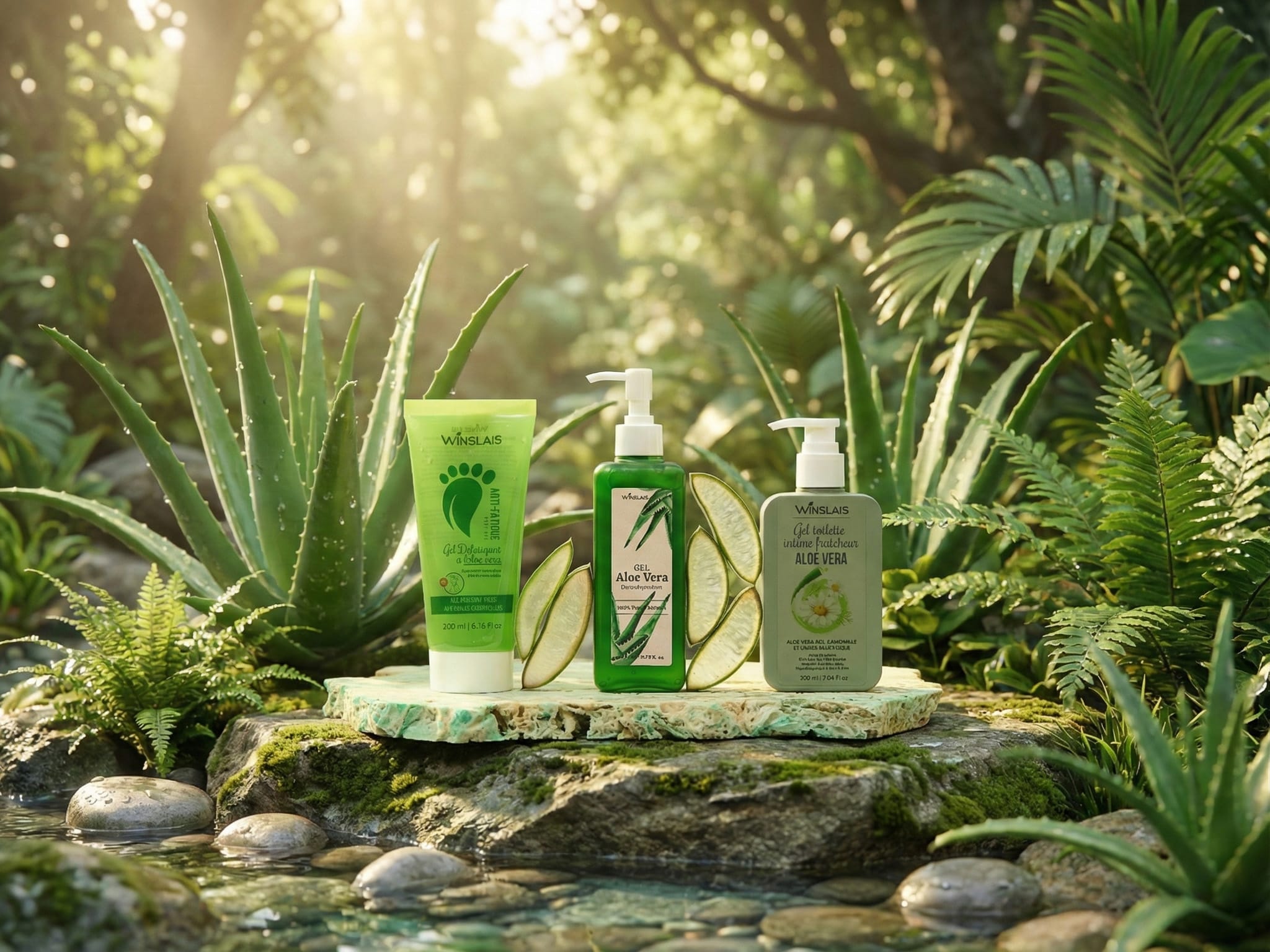 Notre savoir-faire s’exprime à travers une gamme étendue et sophistiquée : soins visage et corps, soins capillaires, sérums — et même des formules sur mesure pensées pour les marques qui aspirent à se distinguer. Chaque création WINSLAIS marie la douceur et la pureté de l’Aloe Vera à une rigueur scientifique afin d’offrir des textures sensorielles, des soins efficaces et un confort irrésistible.